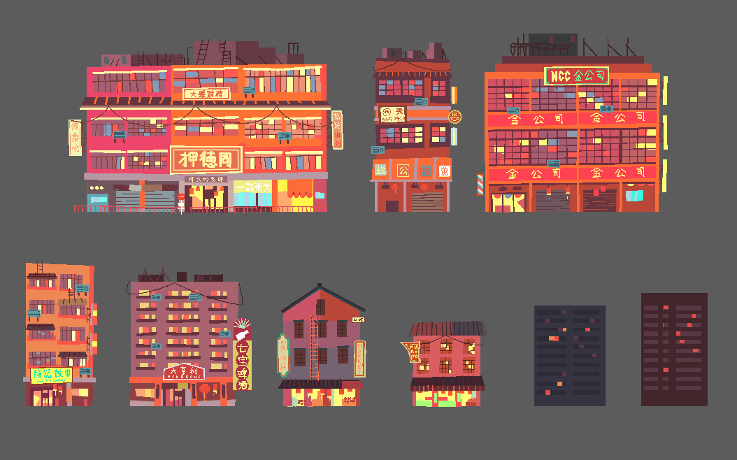 Building designs by Elaine Lee.